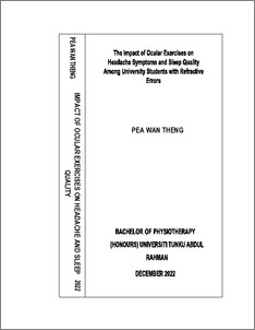 Pea, Wan Theng (2022) The impact of ocular exercises on headache symptoms and sleep quality among university students with refractive errors. Final Year Project, UTAR.