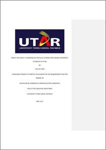 Tan, Kai Wen (2023) Impact of covid-19 pandemic on physical interaction among university students in UTAR. Final Year Project, UTAR.