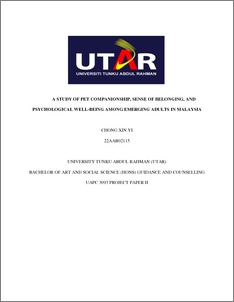 Chong, Xin Yi (2025) A study of pet companionship, sense of belonging, and psychological well-being among emerging adults in Malaysia. Final Year Project, UTAR.