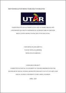 Chin, Meng En and Tan, Hui Wen and Wong, En (2025) Parenting styles (authoritarian and authoritative) and childhood traumatic experiences as predictors of emotion regulation among young adults in Malaysia. Final Year Project, UTAR.