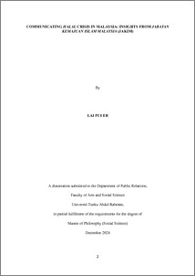 Lai, Pui Er (2025) Communicating halal crisis in Malaysia: Insights from Jabatan Kemajuan Islam Malaysia (JAKIM). Master dissertation/thesis, UTAR.