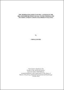 Ching, Loo Pei (2025) The moderating effect of self esteem on the relationship between social connectedness and teaching anxiety among teachers in Malaysia. Master dissertation/thesis, UTAR.