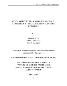 Chai, Jia Yu and Loong, Hui Ning and Nyeo, Jia Rou (2025) Applying theory planned behaviour(TPB) on Generation Z’s online shopping purchase intention. Final Year Project, UTAR.