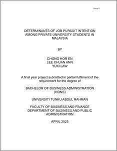 Chong, Hor En and Lee, Chuan Ann and Law, Yuki (2025) Determinants of job pursuit intention among private university students in Malaysia. Final Year Project, UTAR.