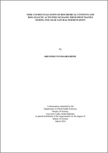 Rhupinee, Punniamoorthy (2025) Time course evaluation of biochemical contents and biocatalytic activities of jiaosu from fruit wastes during one-year natural fermentation. Master dissertation/thesis, UTAR.