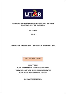 Tee, Yun Jia (2024) ESL preservice teachers’ readiness towards the use of gamification in the classroom. Final Year Project, UTAR.