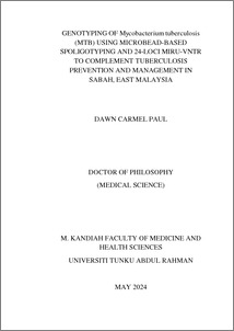 Dawn, Carmel Paul (2024) Genotyping of Mycobacterium tuberculosis (MTB) using microbead-based spoligotyping and 24- LOCI MIRU-VNTR to complement tuberculosis prevention and management in Sabah, East Malaysia. PhD thesis, UTAR.