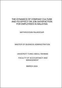 Mathisoodan, Rajasegar (2024) The dynamics of company culture and its effect on job satisfaction for employees in Malaysia. Master dissertation/thesis, UTAR.