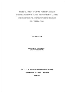 Lim, Sheng Jye (2024) The development of a rapid test for vascular endothelial growth factor (VEGF) detection and the effects of VEGF and anti-VEGF on permeability of endothelial cells. PhD thesis, UTAR.