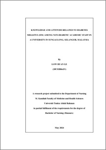 Low, Huan Le (2024) Knowledge and attitude related to diabetes mellitus (DM) among non-diabetic academic staff in a university in Sungai Long, Selangor, Malaysia. Final Year Project, UTAR.