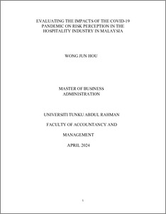 Wong , Jun Hou (2024) Evaluating the impacts of the covid-19 pandemic on risk perception in the hospitality industry in Malaysia. Master dissertation/thesis, UTAR.