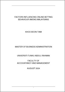 Khoo, Boon Tiam (2024) Factors influencing online betting behaviour among Malaysians. Master dissertation/thesis, UTAR.