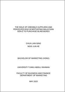 Chua, Lian Qing and Ngoi, Jun He (2025) The role of credible suppliers and perceived risk in motivating Malaysian Gen-Z to purchase blind boxes. Final Year Project, UTAR.