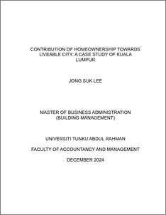 Jong, Suk Lee (2025) Contribution of homeownership towards liveable city: a case study of Kuala Lumpur. Master dissertation/thesis, UTAR.