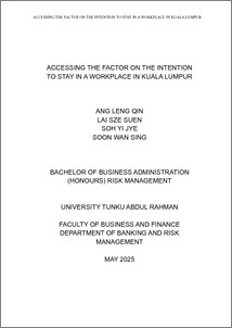 Ang, Leng Qin and Lai, Sze Suen and Soh, Yi Jye and Soon, Wan Sing (2025) Accessing the factor on the intention to stay in a workplace in Kuala Lumpur. Final Year Project, UTAR.