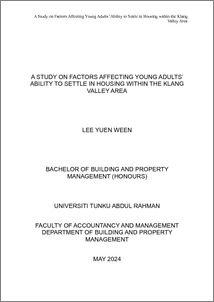 Lee, Yuen Ween (2024) A study on factors affecting young adults’ ability to settle in housing within the Klang Valley area. Final Year Project, UTAR.