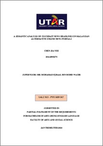 Chen, Jia Yee (2024) A semantic analysis of clickbait news headlines on Malaysian alternative online news portals. Final Year Project, UTAR.