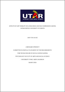 Tan, Joey Jia Ee (2024) Effects of art therapy on loneliness and self-expression among introverted university students. Final Year Project, UTAR.