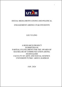 Lee, Yi Ling (2024) Social media motivations and political engagement among UTAR students. Final Year Project, UTAR.