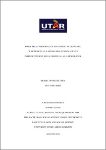 Wong, Muriel Jie Chee and See, Tong Shin (2024) Dark triad personality and public acceptance of homosexuals among Malaysian adults: Interdependent self-construal as a moderator. Final Year Project, UTAR.