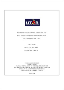 Ngu, Wendy Tang Xi and Chua, Jiaen and Tan, Ricky Wai Hong (2024) Perceived social support, job stress, and self-efficacy as predictors on employee engagement in Malaysia. Final Year Project, UTAR.