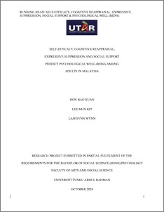 Hon, Bao Xuan and Lam, Synn Wynn and Lee, Mun Kit (2024) Self-efficacy, cognitive reappraisal, expressive suppression and social support predict psychological well-being among adults in Malaysia. Final Year Project, UTAR.