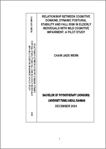 Chaw, Jade Wern (2024) Relationship between cognitive domains, dynamic postural stability and fall risk in elderly individuals with mild cognitive impairment: a pilot study. Final Year Project, UTAR.