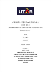戴, 佳雯 and Dai, Jiawen (2025) 唐宋诗词与中国网络古风歌词的融创(2005-2018) : The fusion and creation of tang and Song Dynasty poetry and Chinese online ancient style lyrics(2005-2018). Final Year Project, UTAR.