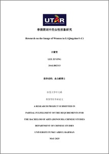 吕, 紫莹 and Lee, Zi Ying (2025) 李清照词中的女性形象研究 : Research on the image of women in Li Qingzhao’s Ci. Final Year Project, UTAR.