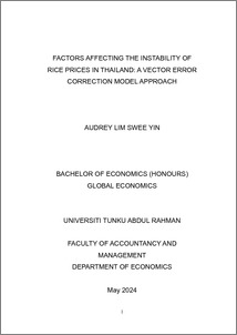 Lim, Audrey Swee Yin (2024) Factors affecting the instability of rice prices in Thailand: a vector error correction model approach. Final Year Project, UTAR.