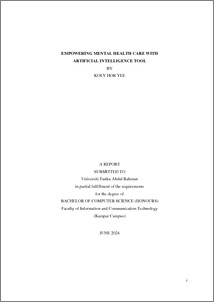 Koey, Hor Yee (2024) Empowering mental health care with artificial intelligence tool. Final Year Project, UTAR.