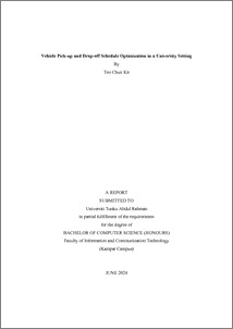 Teo, Chun Kit (2024) Vehicle pick-up and drop-off schedule optimization in a university setting. Final Year Project, UTAR.