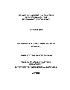 Chye, Chi Ern (2024) Factors influencing the customer intention in adopting autonomous vehicles (AVS). Final Year Project, UTAR.