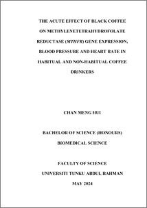 Chan, Meng Hui (2024) The acute effect of black coffee on methylenetetrahydrofolate reductase (MTHFR) gene expression, blood pressure, and heart rate in habitual and non-habitual coffee drinkers. Final Year Project, UTAR.