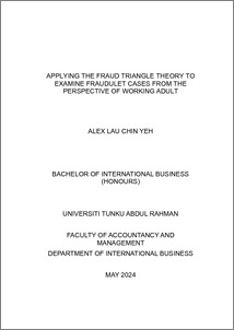 Lau , Alex Chin Yeh (2024) Applying the fraud triangle theory to examine fraudulent cases from the perspective of working adult. Final Year Project, UTAR.