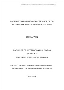 Lee, Hai Wen (2024) Factors that influence acceptance of qr payment among customers in Malaysia. Final Year Project, UTAR.