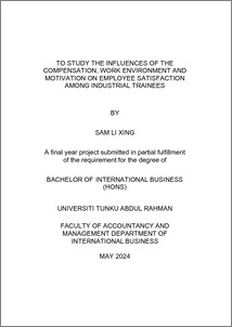 Sam, Li Xing (2024) To study the influences of the compensation, work environment and motivation on employee satisfaction among industrial trainees. Final Year Project, UTAR.