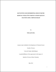 Tong, Jin Ying (2024) Batch study and experimental design for the removal of reactive orange 16 from aqueous solution using chitosan beads. Final Year Project, UTAR.