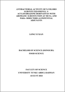 Long, Yi Xian (2024) Antibacterial activity of 5-chloro substituted phenyl n-acylhydrazone derivatives with aromatic substitution at meta- and para- directors as potential adjuvants. Final Year Project, UTAR.