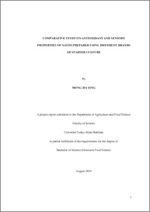 Mong, Jia Ying (2024) Comparative study on antioxidant and sensory properties of natto prepared using different brands of starter culture. Final Year Project, UTAR.
