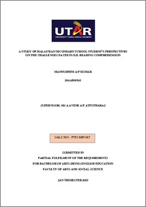 Mannudhini, Kumar (2023) A study of Malaysian secondary school student’s perspectives on the challenges faced in ESL reading comprehension. Final Year Project, UTAR.