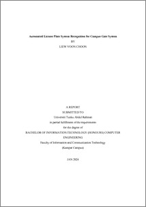 Liew , Voon Choon (2024) Automated license plate system recognition for campus gate system. Final Year Project, UTAR.