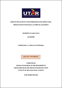 Roshinie, Saravanan (2023) Difficulties faced by UTAR undergraduates during oral presentation in English as a form of assessment. Final Year Project, UTAR.