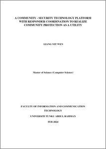 Liang, Yit Wen (2024) A community-security technology platform with responder coordination to realize community protection as a utility. Master dissertation/thesis, UTAR.