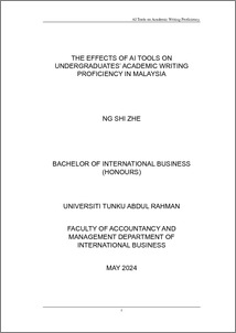 Ng, Shi Zhe (2024) The effects of AI tools on undergraduates’ academic writing proficiency in Malaysia. Final Year Project, UTAR.