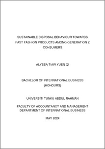 Tiaw, Alyssa Yuen Qi (2024) Sustainable disposal behaviour towards fast fashion products among generation z consumers. Final Year Project, UTAR.