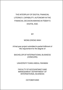 Wong, Zheng Wah (2024) The interplay of digital financial literacy, capability, autonomy in the financial decision-making in today’s digital age. Final Year Project, UTAR.