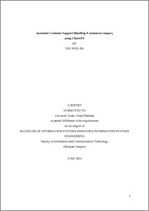 Teo, Wen Jin (2024) Automate customer support handling E-Commerce enquiry using ChatGPT. Final Year Project, UTAR.