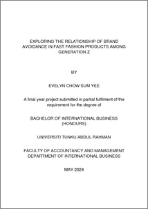 Chow, Evelyn Sum Yee (2024) Exploring the relationship of brand avoidance in fast fashion products among generation z. Final Year Project, UTAR.
