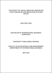 Goh, Pieh Ling (2024) The effect of social media influencer on youth online buying behaviour in Klang Valley. Final Year Project, UTAR.